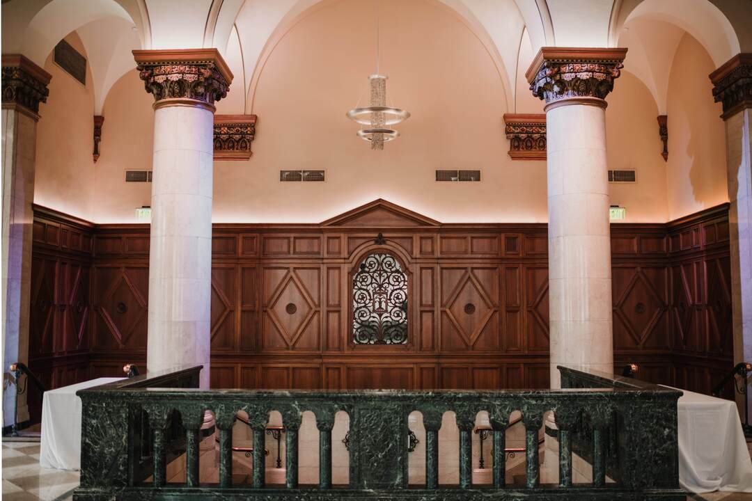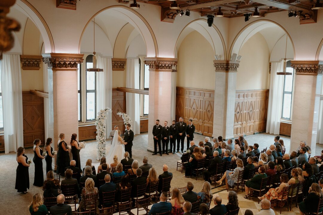 For a jaw-dropping and stunning backdrop for your wedding day, look no further than the Ballroom at CityFlatsHotel in Grand Rapids, Michigan. This breathtaking venue boasts vaulted ceilings, marble columns, the grand ballroom staircase, a fully customizable LED lighting system, all exclusive in-house food & beverage catering, access to the bridal suite, and custom layout for your event.