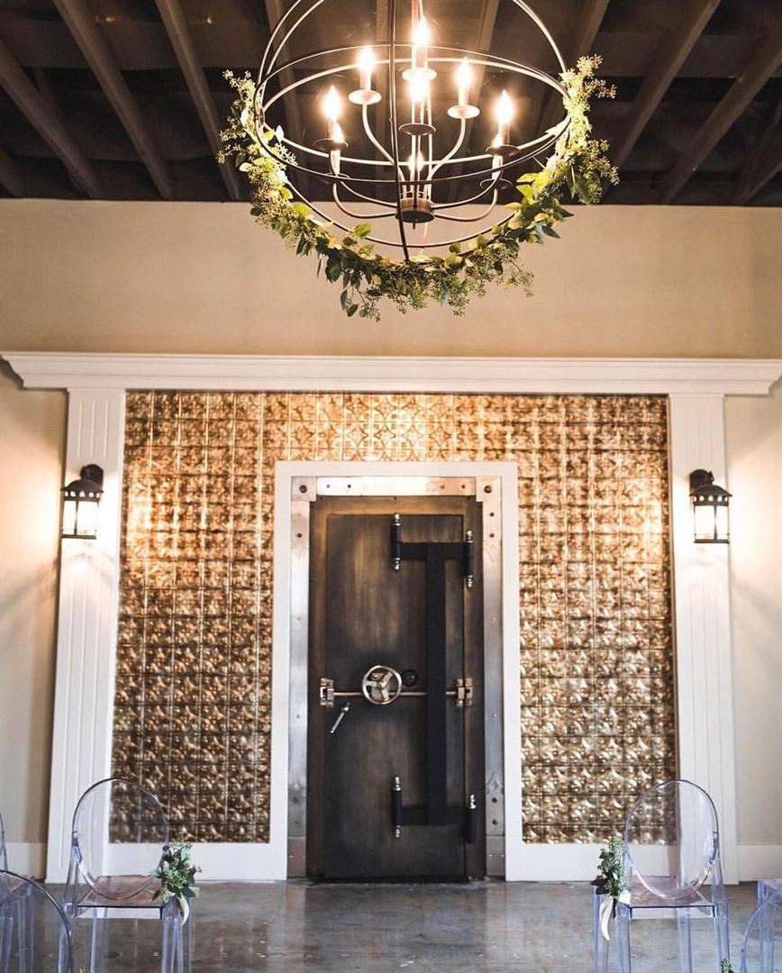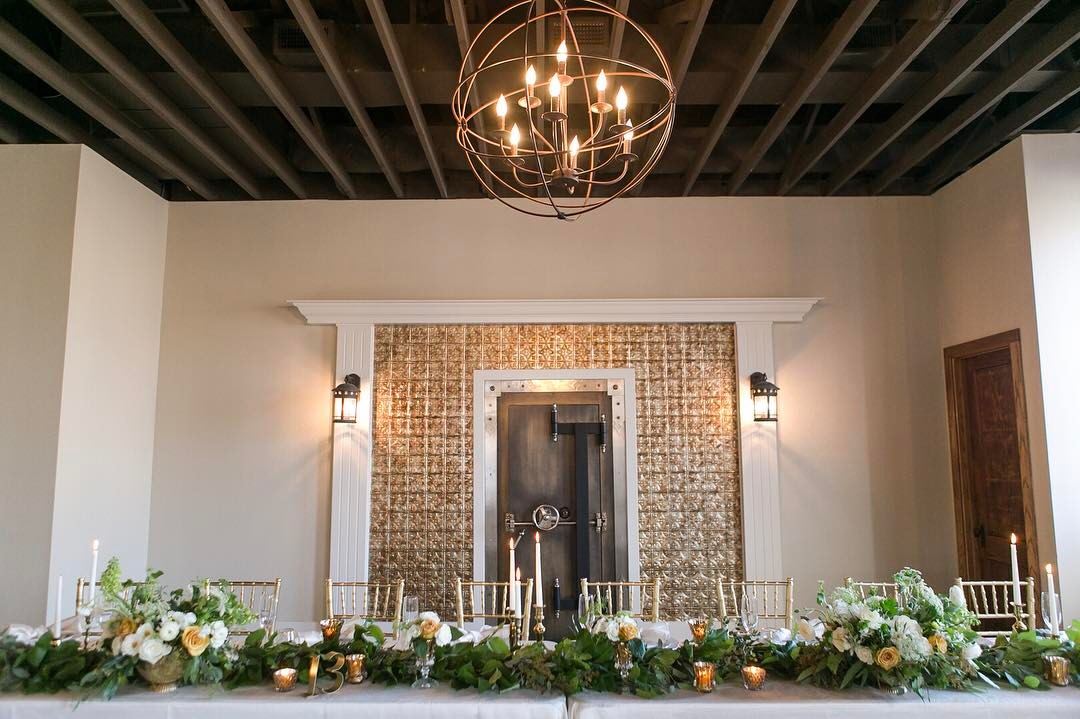 8th&Main is a wedding and events space in historic downtown Grandview, Missouri. The urban space that has been restored to grandeur with a nod to its past life as a bank. While renovating the building, we discovered the original bank vault and gave it a prominent place in this intimate room with 10 foot oak paneled doors dating back to 1902. The vault room is ideal for a ceremony or cocktail party of 130 or less.