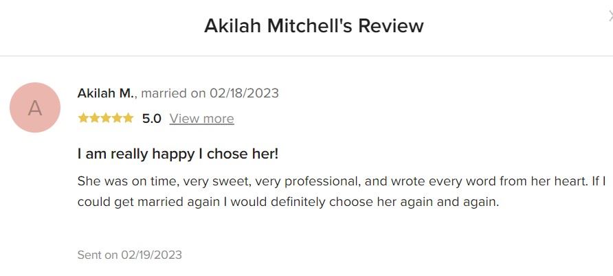 Thank you for considering A Minister for Me for your big day. A minister for me is black-owned and women led. We have been in business four years and strive to make each wedding ceremony unique and special for all couples no matter race, ethnicity, or sexual orientation/identity. Couples tell us what they want and we make it happen.