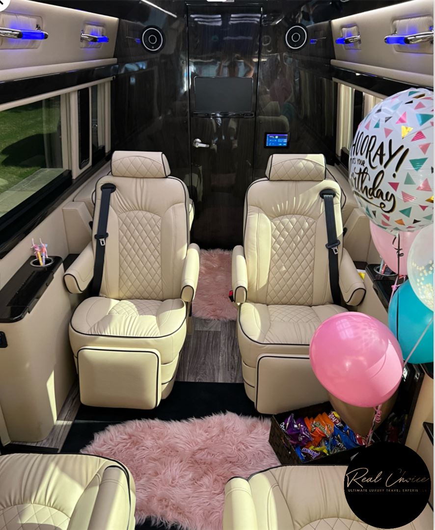 Real Choice provides a safe, reliable, and luxury transportation service. We offer a smoke-free, family friendly environment with state of the art interior design for your comfort. Our Mercedes Sprinter is cleaned and sanitized on a regular basis and well maintained. You will have access to an on-board bathroom with the latest audio and video equipment which includes gaming capabilities to meet your family needs. Our professional and courteous staff will ensure your travel is enjoyable. We will get you to your destination on time in style every time.