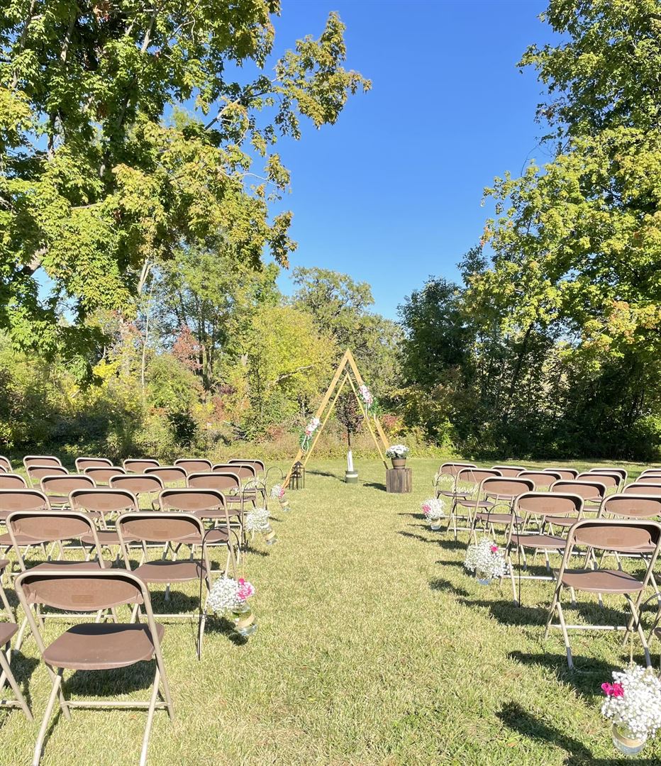 The beauty of a lush meadow is the ideal setting for an outdoor ceremony and/or reception. The charmingly natural surroundings, away from roads and buildings, will bring the perfect pastoral touch to your romantic day.