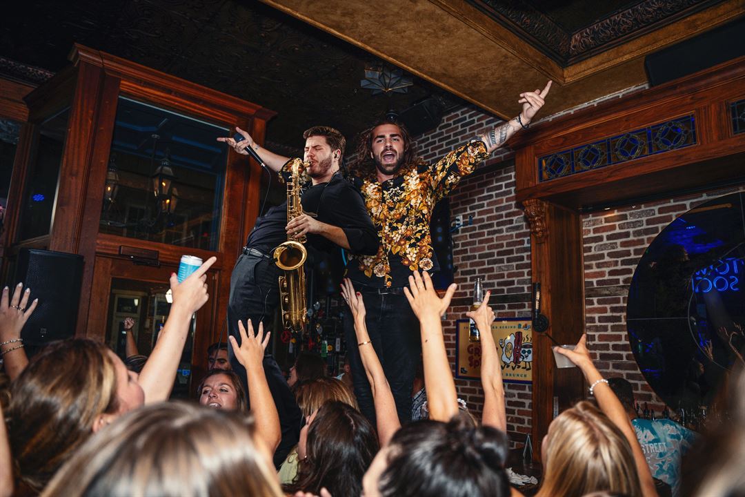 Our wedding band is a group of 5 best friends with BIG personalities. We are original artists as well and pursue music as a full time career. When we started performing weddings (at first on the side) we didn't realize how big the demand was for a non-traditional band. The whole musical aspect of the industry was run by cookie-cutter wedding bands that looked so much more corporate than artistic. So many couple's felt trapped into choosing a band that would simply play songs, but not give the crowd a performance. The reception is meant to be high energy, interactive, and engaging. As artists that tour the country and live the music we play, we truly believe we are the best in the country at providing our weddings with something real. Something that they can remember and take home with them for years to come.