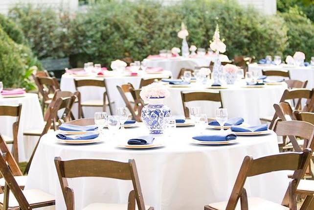 An ideal location for your next event, The Bailey-Tebault House provides both indoor and outdoor areas for traditional or rustic wedding ceremonies and receptions. The house includes an upstairs bridal suite and a catering kitchen. The grounds offer a covered veranda, a brick patio, a 2,200 square foot garden, a barbeque pavilion, and plenty of parking.