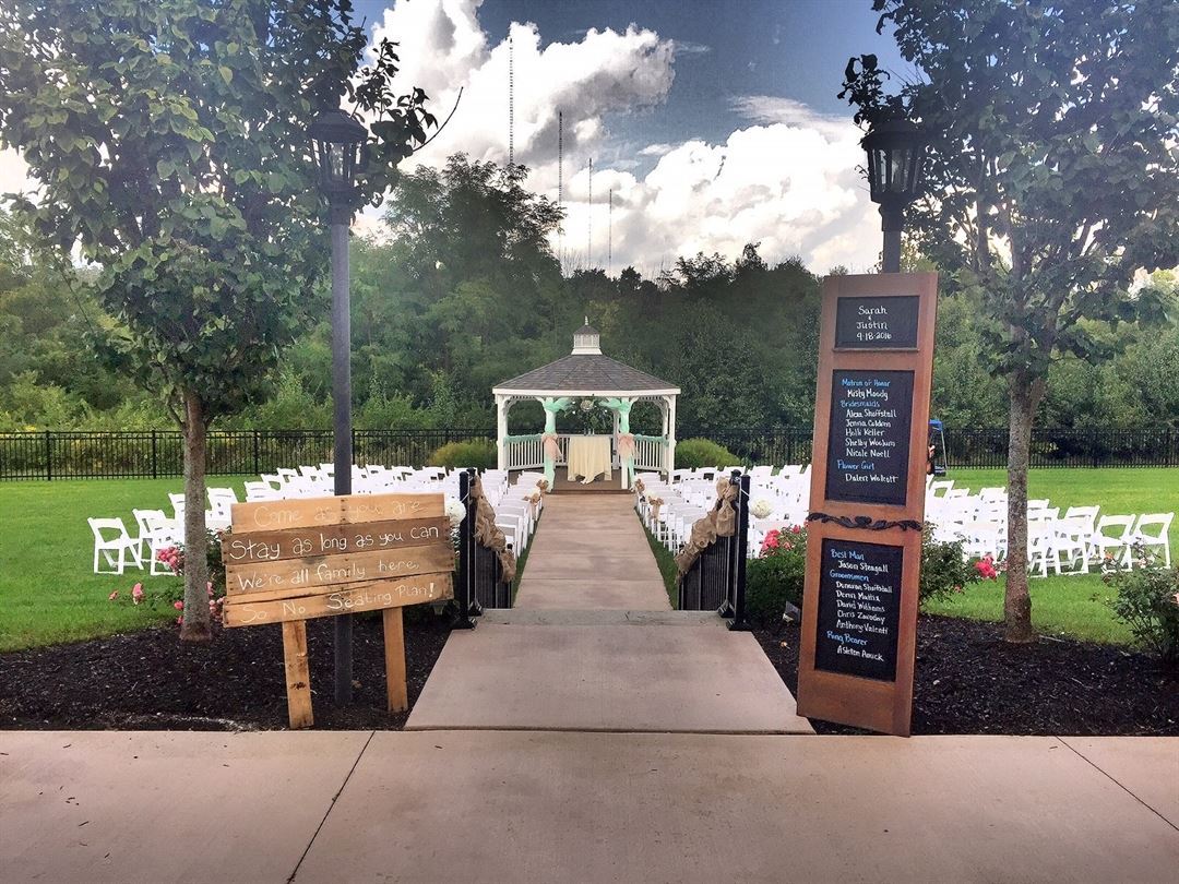Located just off of I-71 in Grove City, Ohio—with several quality hotels close by—the Aladdin Shrine Event Center can accommodate up to 250 guests in our beautiful Grand Ballroom. We also feature a large Gallery, dedicated Bridal Suite and separate Groom’s Room, and a private outdoor patio that leads to a lush, spacious lawn. On that tree-lined lawn, a short pathway takes you to our pretty gazebo that is perfect for a wedding ceremony. With our other smaller spaces available for rental, we can accommodate everything from a beautiful wedding and reception or large corporate event to a class reunion or a small private birthday party. What are you planning? We can provide the perfect location!