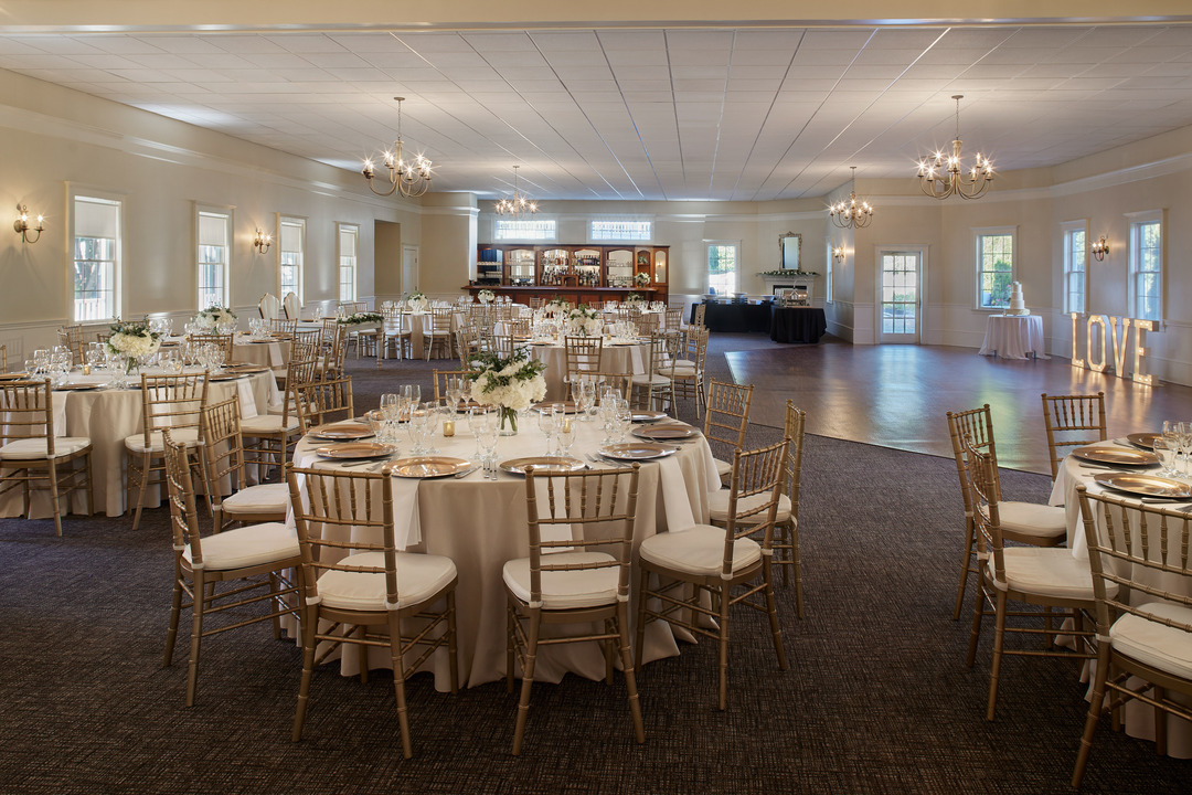 The venue's appeal lies in its ability to accommodate events throughout the year, showcasing New England's beauty in every season. With its lush gardens, mature trees, and expansive grassy areas, Groveland Fairways provides a stunning natural backdrop for outdoor events. The charming wraparound porch and crisp white facade with shutters create an inviting first impression, while the meticulously maintained grounds offer numerous possibilities for event layouts and photo opportunities. Inside, the venue offers multiple spaces with elegant architectural details, including crown molding, chair railing, and fireplaces, suitable for various event sizes and styles.