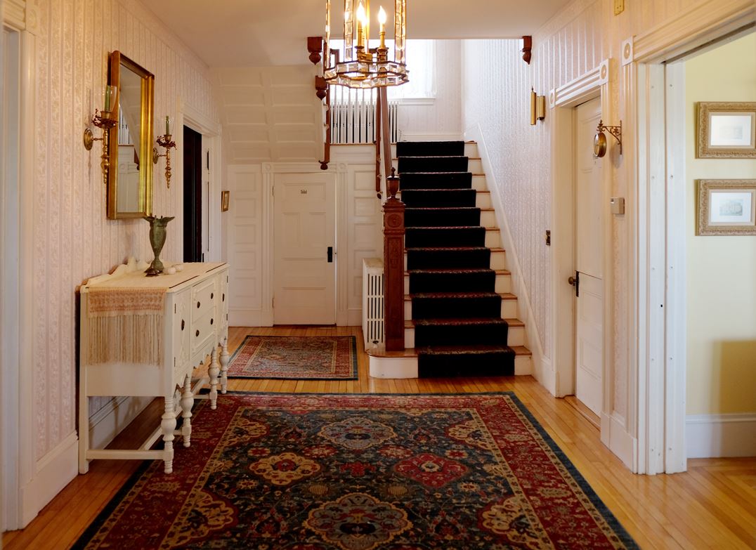We offer a classic, historic, elegant setting in the serene Maine Highlands. Our formal dining room can seat ten adults and is ideal for a special, offsite meeting of the minds. Whether work-related, hobby-related, or something else altogether, we can make it happen for you. A retractable projector screen and projector is available for showing presentations and/or videos in the library. For stay-over guests, we offer 4 en suite guest rooms on the 2nd floor plus 1 guest room with shared bath on the 3rd floor. For more information about events, please visit our website or give us a call.