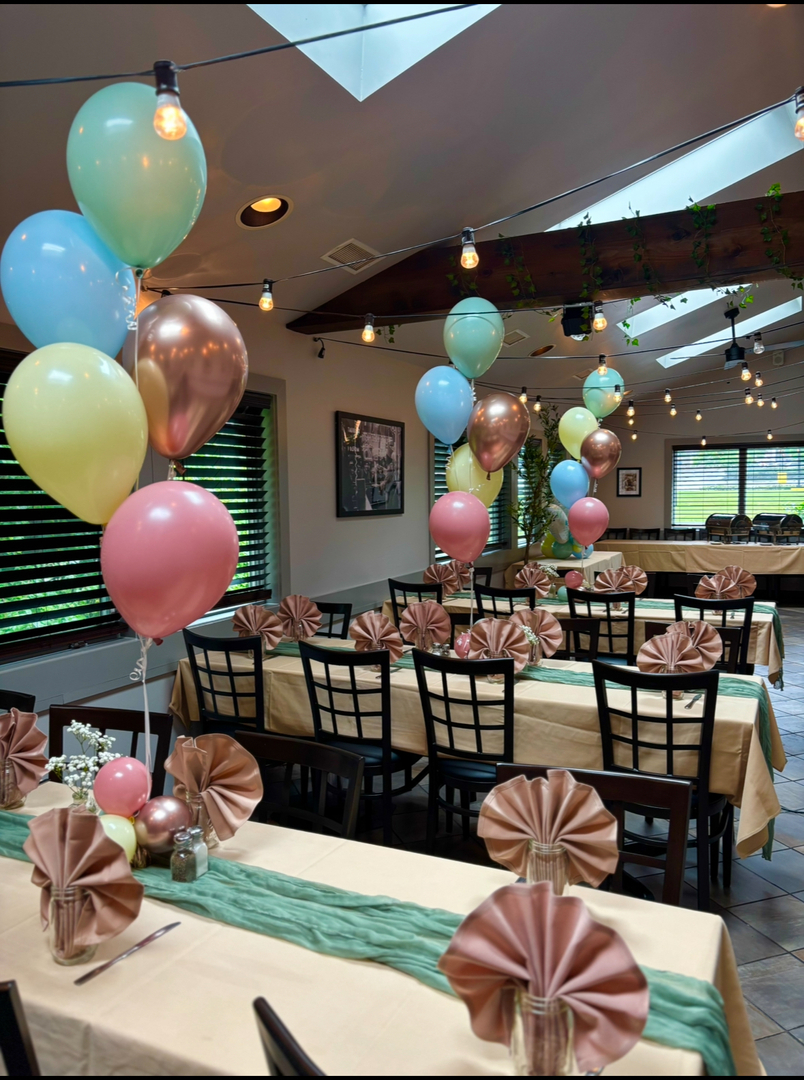 We use locally sourced produce, organic chicken, meats from a local butcher, and almost everything we have on our menu is 100% homemade. In addition to the delicious food we offer, we provide complimentary decorations for your event. We provide tablecloths, a choice of napkin linen colors, and we personally create elegant centerpieces featuring flowers of your choice, all to enhance the ambiance of your celebration. We do not charge a fee for the room rental, you only pay for food and service.