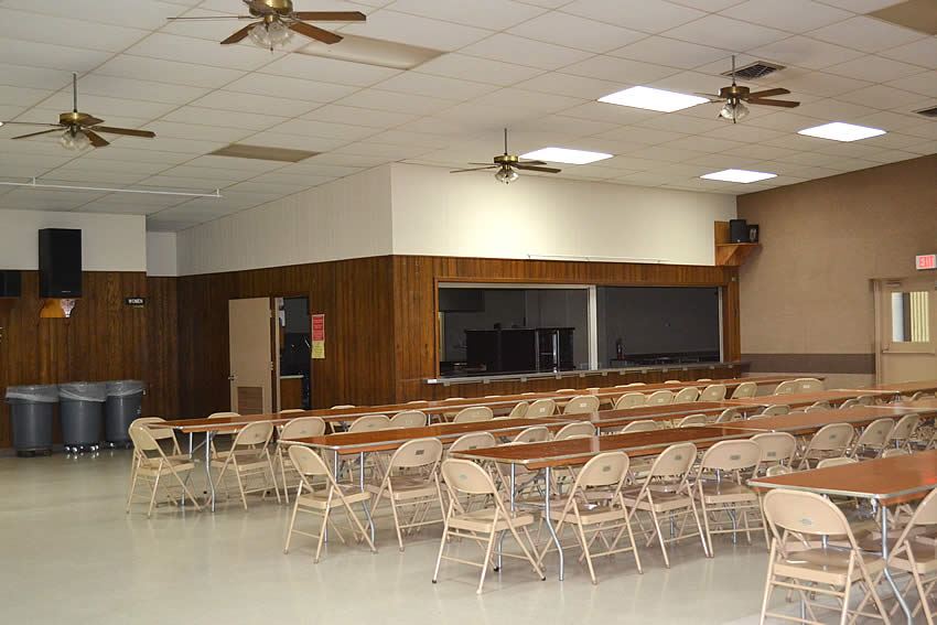 The hall features a large stage with sound equipment that can be utilized for bands and DJs. The hall also has full kitchen facilities, a full bar, and an outdoor BBQ area with a covered pavilion. Adjacent to the Pavilion is a covered Beer Garden with picnic tables, a band stage, and restroom facilities. Plenty of parking is available in the paved parking lot.