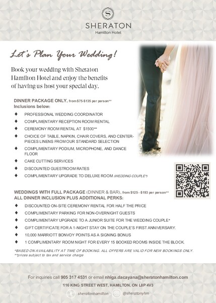 • 1 complimentary guestroom night, for every 15 paid room nights booked in your wedding room block