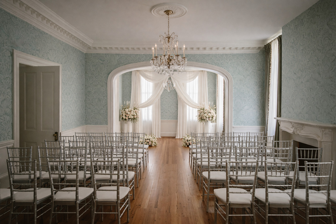 Intimate indoor ballroom accommodating up to 50 guests, perfect for personalized, high-end gatherings.