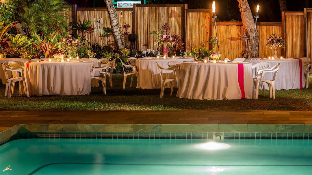 Hanalei Colony offers a choice of beautiful indoor and outdoor venues for your wedding reception, along with professional catering services and a selection of menus to perfectly suit your needs. Contact our wedding coordinator for more details on reception options for your wedding day.