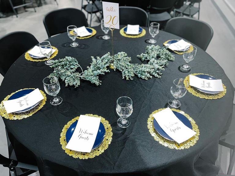 There are five 8 foot tables and four 6 foot tables available to use for food and beverage or to display embarrassing pictures at your next high school reunion.