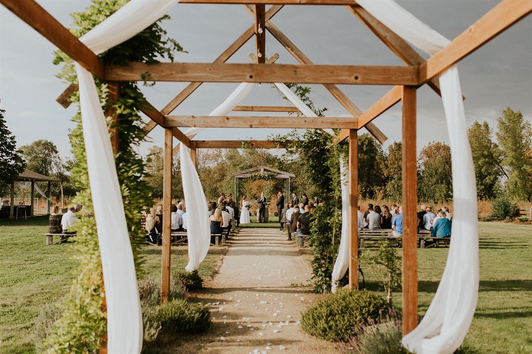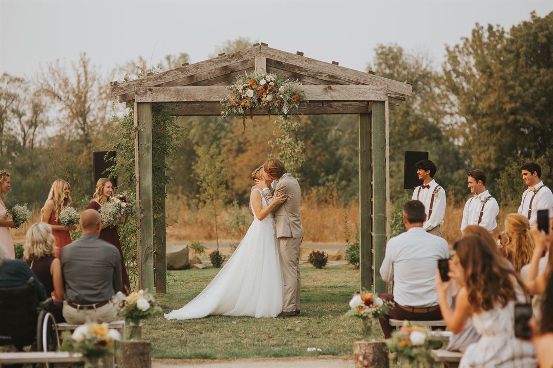 Creekside Farm is located in Harrisburg, Oregon, just 15 minutes from local hotels and shopping. Our farm venue features a garden-like ceremony and reception space with stunning views of the surrounding fields. Guests enjoy comfortable, modern amenities including clean flushing restrooms, two spacious dressing rooms, and a covered pavilion with a generous dance floor—perfect for celebrating in any weather.