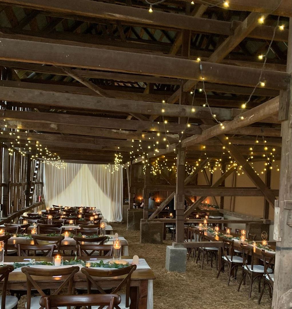 We are a private family owned 100 acre farm with beautiful historic barns, rolling hills, and majestic views all surrounded by a gorgeous old forest. Enjoy exclusive use of our entire property when you host an event with us. Although we have a 50 guest capacity indoors, we have a variety of beautiful outdoor spaces to choose from for your celebration. Contact us to book your wedding at the farm!