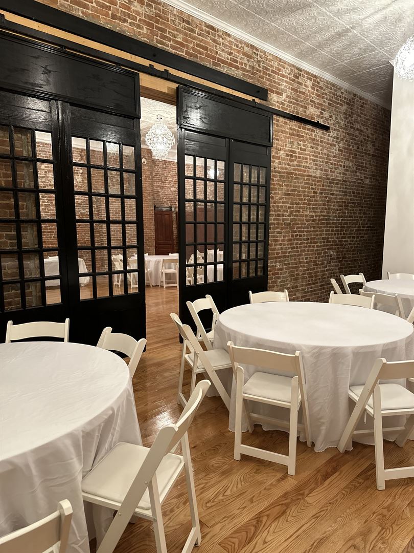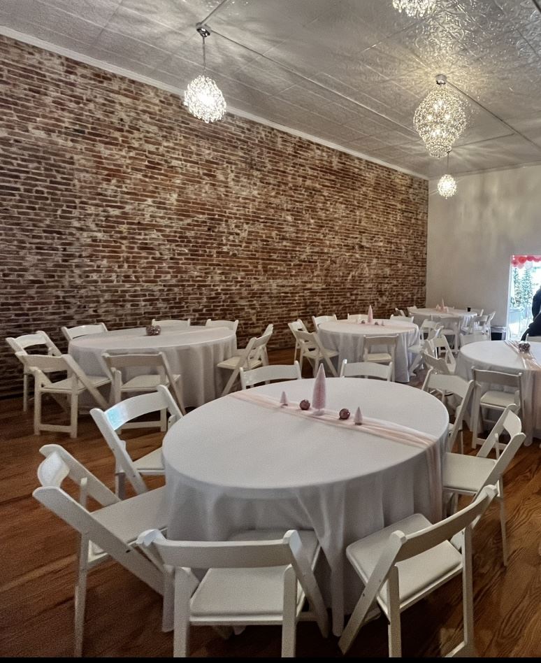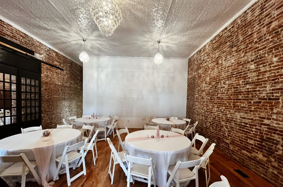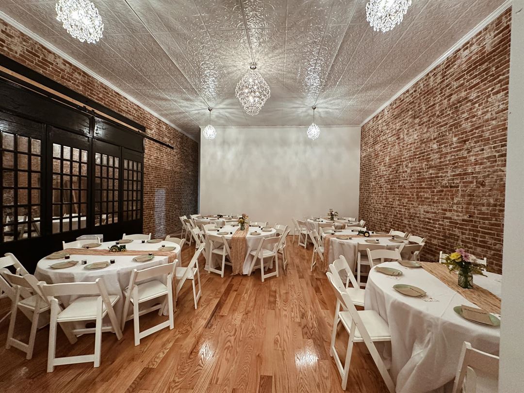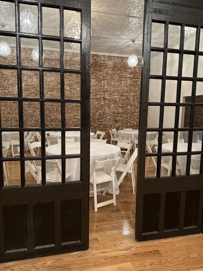 Host your next wedding or celebration in the Fleur de Lis ballroom. Orginial pressed tin ceilings adorned with chandeliers will wow guests on your special day.