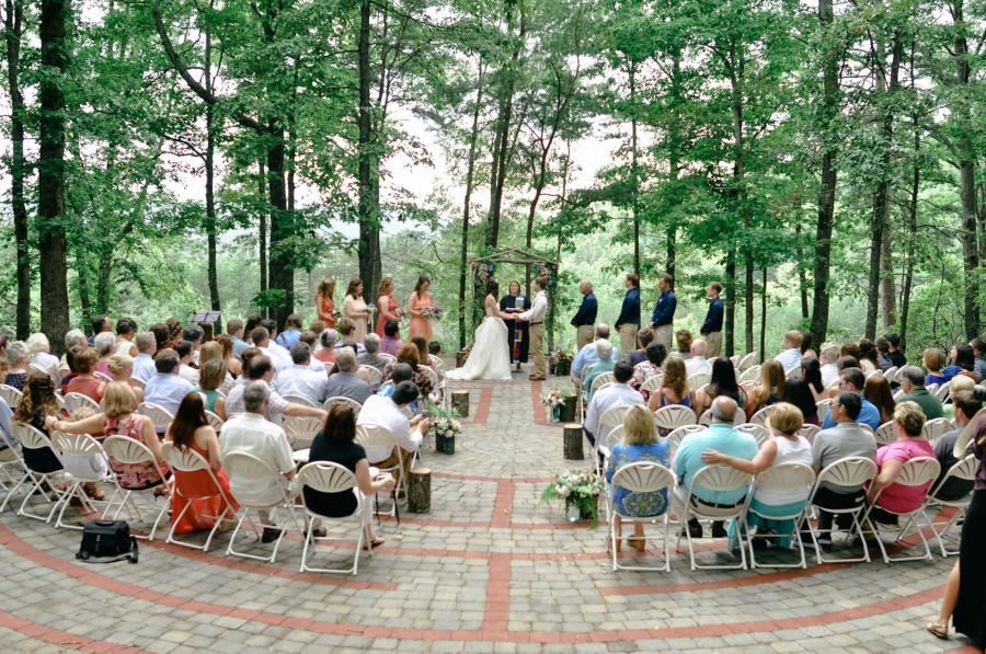 Perched on a hill with sweeping views of Lake Chatuge and the surrounding mountains, Dysart Chapel is a favorite site for weddings. The chapel seats up to 100 guests and is a perfect year-round option. Hinton Center’s outdoor Labyrinth is a fabulous fair-weather wedding venue. Surrounded by the beauty of Creation in a woodland setting, the Labyrinth has a simple elegance that transforms the ceremony into a profoundly sacred experience.