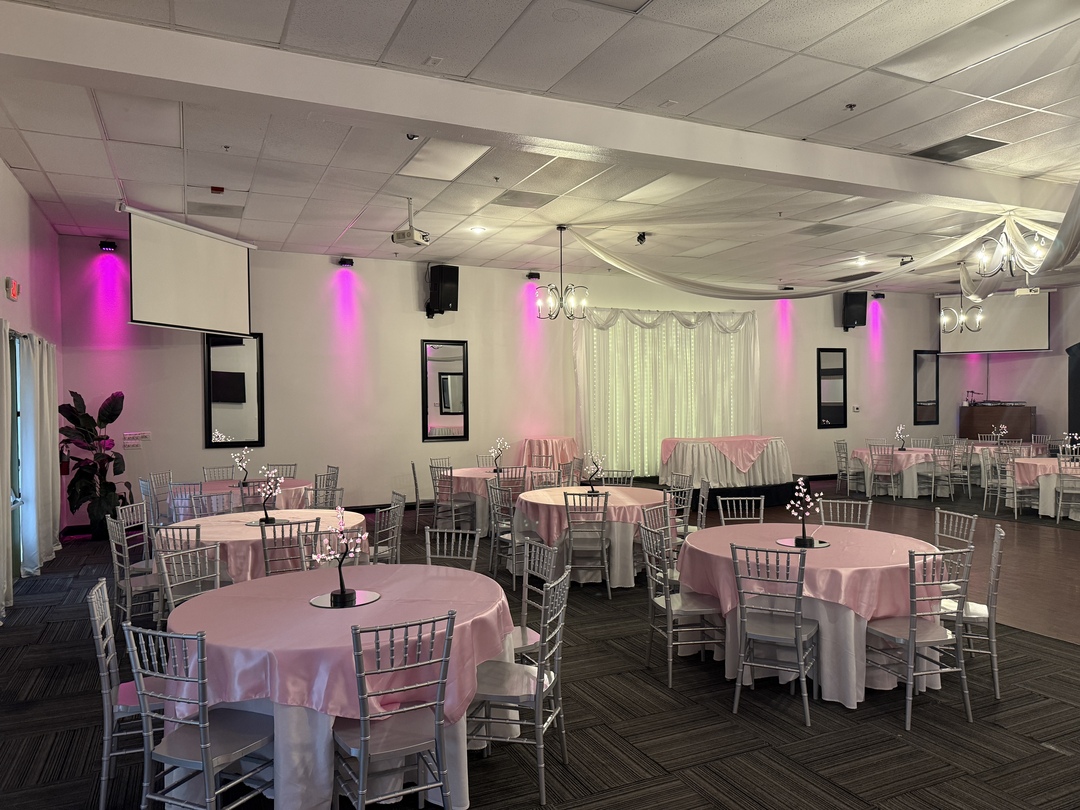 With a beautifully designed space featuring modern décor, customizable lighting, and a grand banquet hall, we offer a perfect setting for your special occasion. Our dedicated event planning team ensures a seamless experience, working closely with you to bring your vision to life. From exquisite catering options to personalized décor packages, we provide everything needed to make your event truly extraordinary.