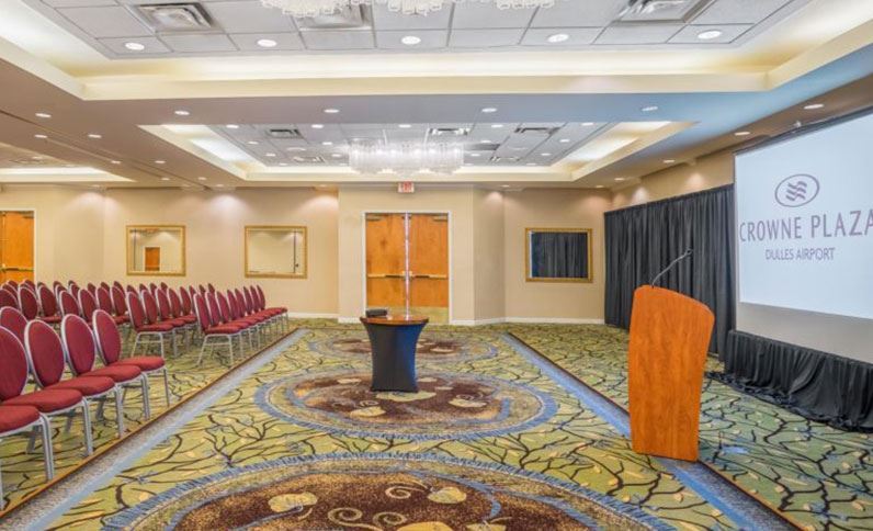 Crowne Plaza Dulles Airport hotel offers more than 10,000 square feet of combined meeting spaces that are at once elegant and flexible. From corporate conferences to family reunions to wedding receptions, we are able to accommodate a whole variety of events. We have small rooms for intimate gatherings, and a large ballroom that can host 400 of your closest friends. Our professional event planners are on hand to help you through the whole process and the big day itself.
