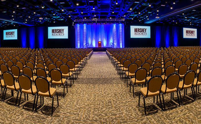 Warm, welcoming, and distinctly Hershey, Hershey Lodge offers convenience and comfort for every group. A massive fieldstone fireplace forms the centerpiece of a spacious lobby – a memorable place to meet, gather, and relax. Amenities include distinctive, on-site dining, a state-of-the-art fitness center, Hershey’s Water Works At Hershey Lodge , and more. With more than 100,000 square feet of meeting and event space, Hershey Lodge is one of Pennsylvania’s largest and best-equipped convention resorts.