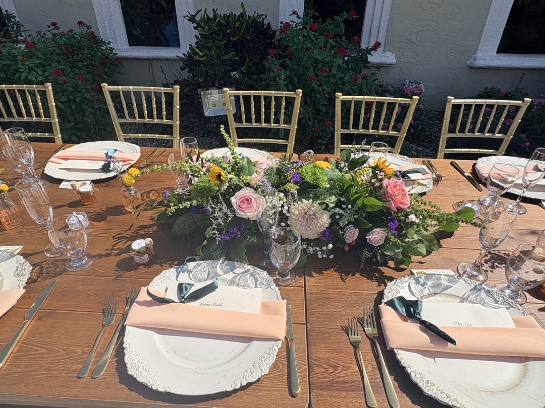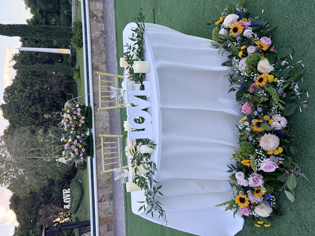 We offer custom floral design for events and special occasions, including bouquets, centerpieces, and full event florals. Each design is tailored to your vision, with flexible options to fit any budget. We also provide complementary styling elements such as favors, dessert displays, and coordinated details to create a cohesive and beautiful event.
