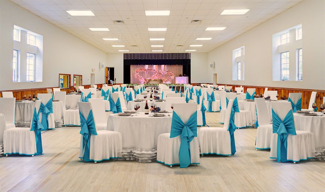 • A stage for performances or presentations • A full on-site kitchen • Multiple bathrooms