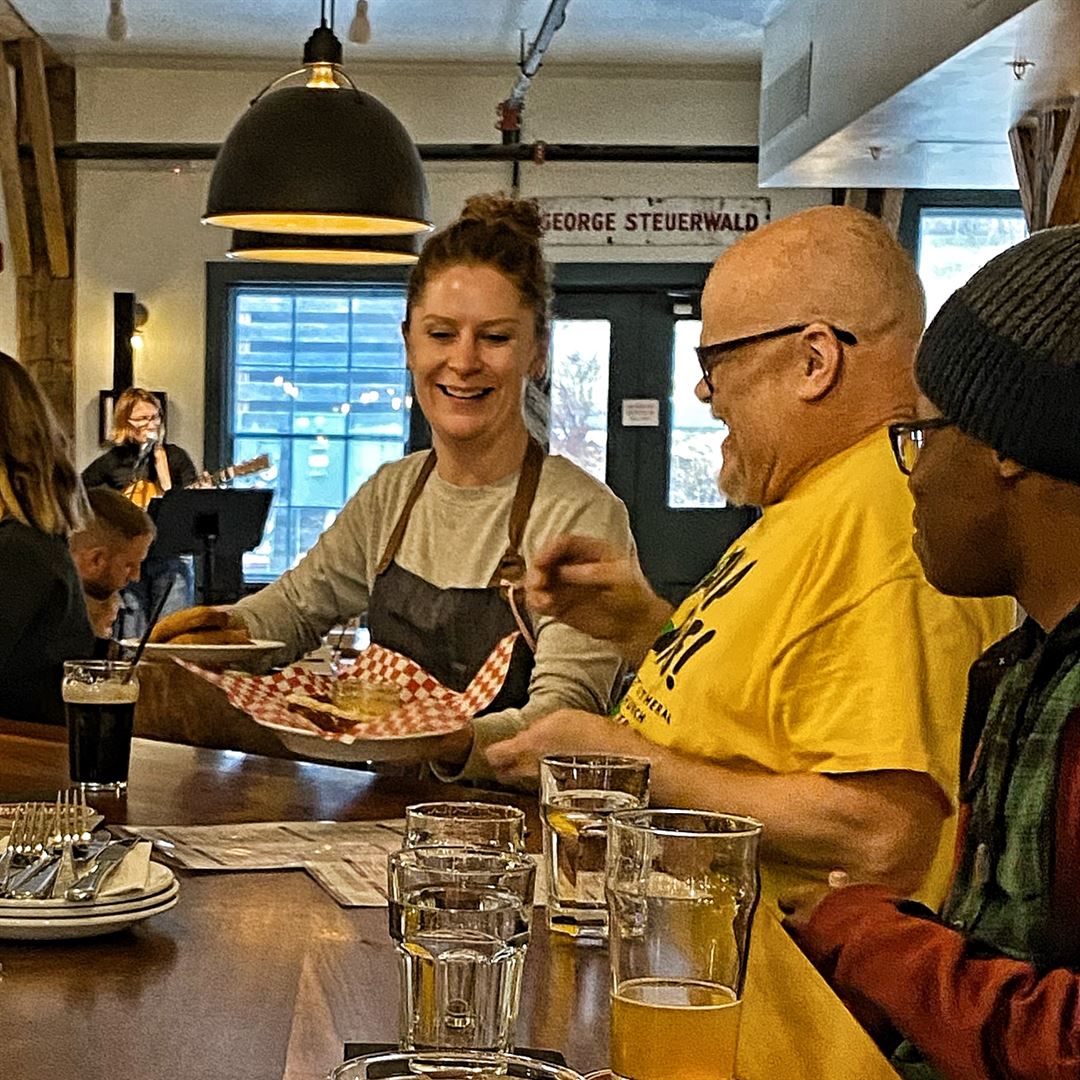 We're a brewery and brewpub located in historic Hillsdale, NY, in a lovingly restored 1850s mercantile building. The interior of our brewpub features an open kitchen and an octagonal bar surrounding an original grain hopper. A covered patio just outside the brewpub allows for additional seating during the warmer months. On the lower level, our beer garden has a roof and a separate bar.