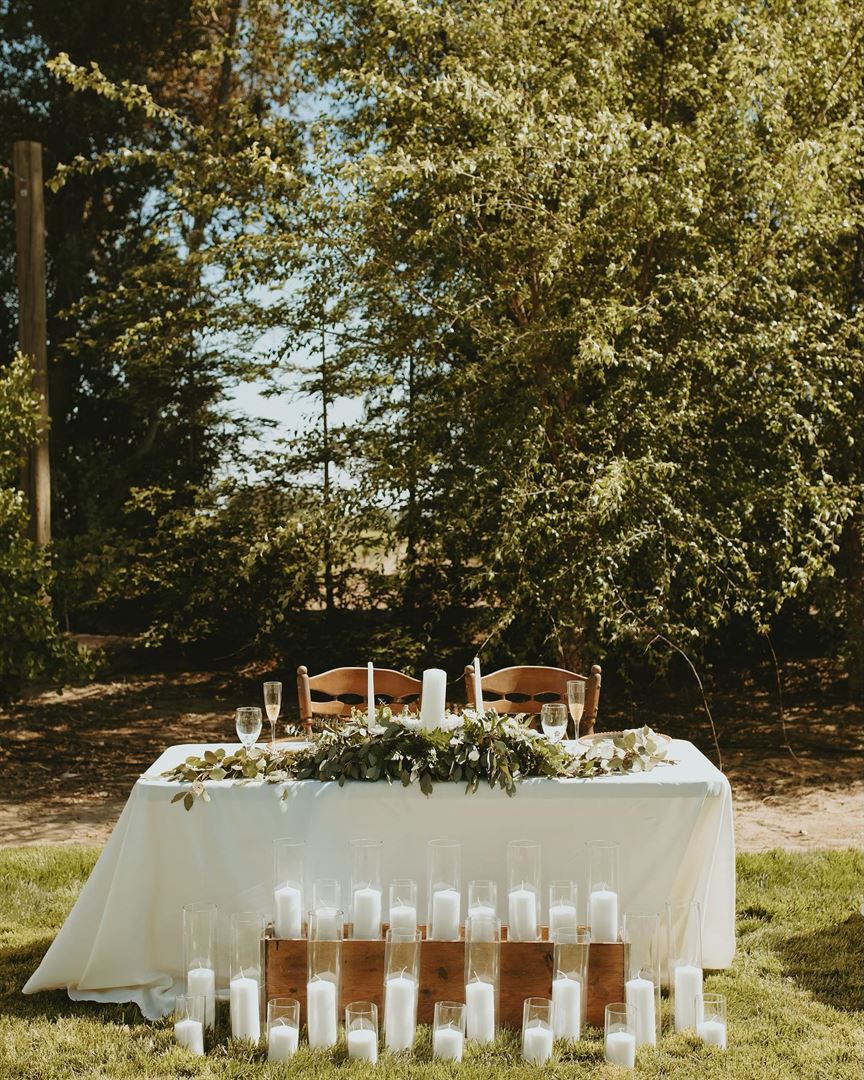 August Meadows hosts events of up to 300 guests for the couple to share their most cherished day with. To-be-weds may choose between multiple spacious lush green areas for both the ceremony site and reception site. Central to this property is a one-of-a-kind silo bar which allows ample area for guests to mingle and visit while enjoying appetizers and beverages. The bar is located central to the large cement pad which is perfect for hosting dancing, dessert bars, and a photo booth. It allows for all of a reception to be contained in one area while giving a wedding an intimate and romantic atmosphere. The enchanting warm white string lights provide the perfect ambiance for a night under the stars.