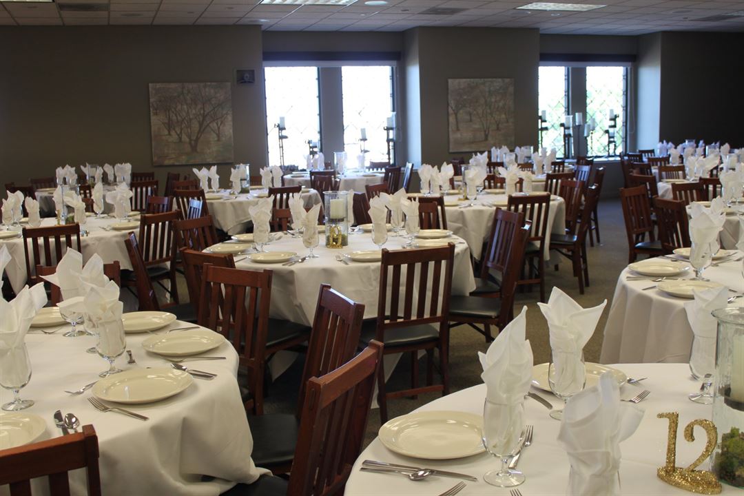 Our beautiful banquet facility is great for any party, whether its an intimate bridal shower for 50 guests or an elaborate holiday party for all 200 of your employees. Our banquet space seats 200, or hosts up to 300 for casual function. The Banquet space also features the solarium with hardwood floor for dancing and an integrated sound system. Included in your rental of our venue, our adjacent landscaped park and walk-through waterfall offer a beautiful backdrop for event pictures.