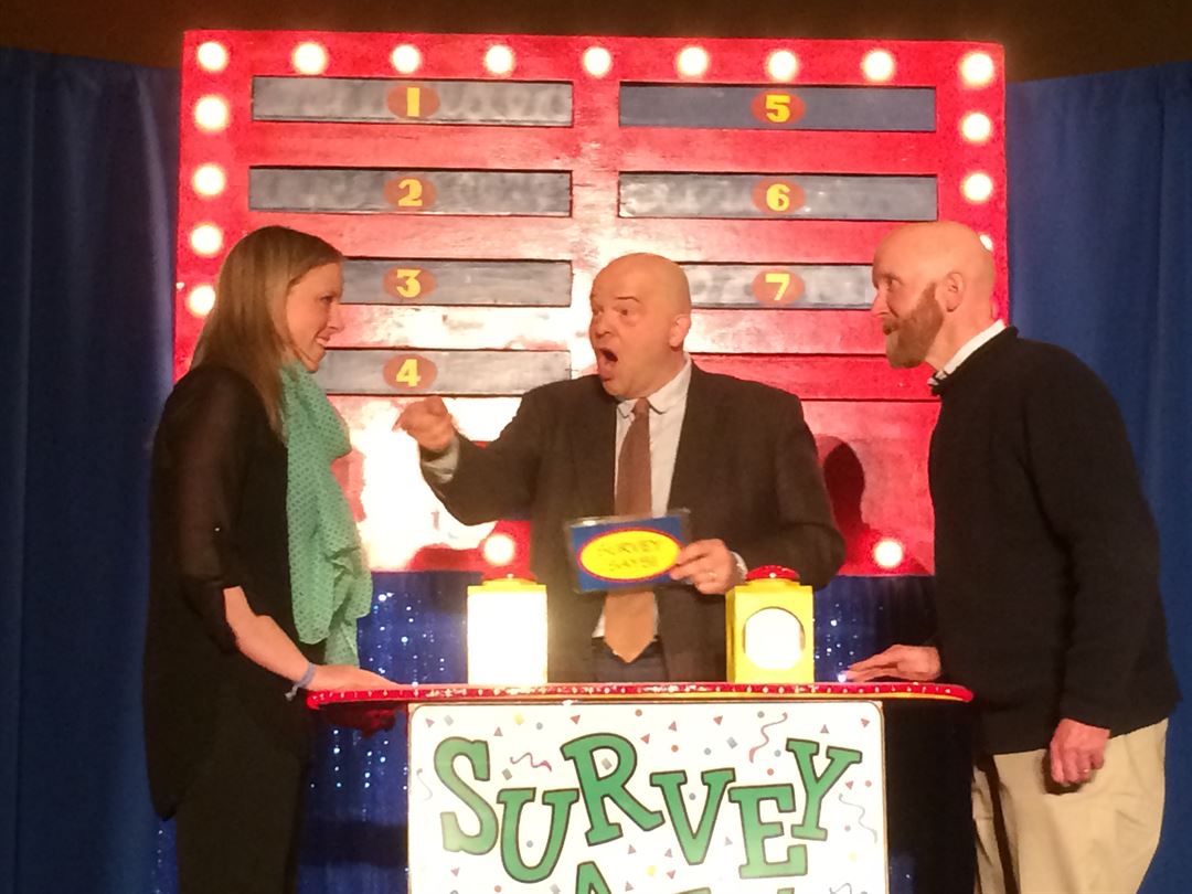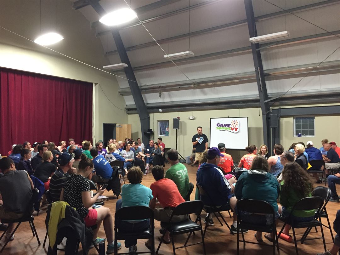 GameShowsVT offers high-energy entertainment with teambuilding game shows to businesses and organizations in and around Vermont, New York, and New England. We specialize in interactive team-building for large scale events. We do business meetings, outings, workshops, weddings, rehearsal dinners, graduations, holiday parties, summer outings, etc. We also can work with you to customize the script to include industry specific content.