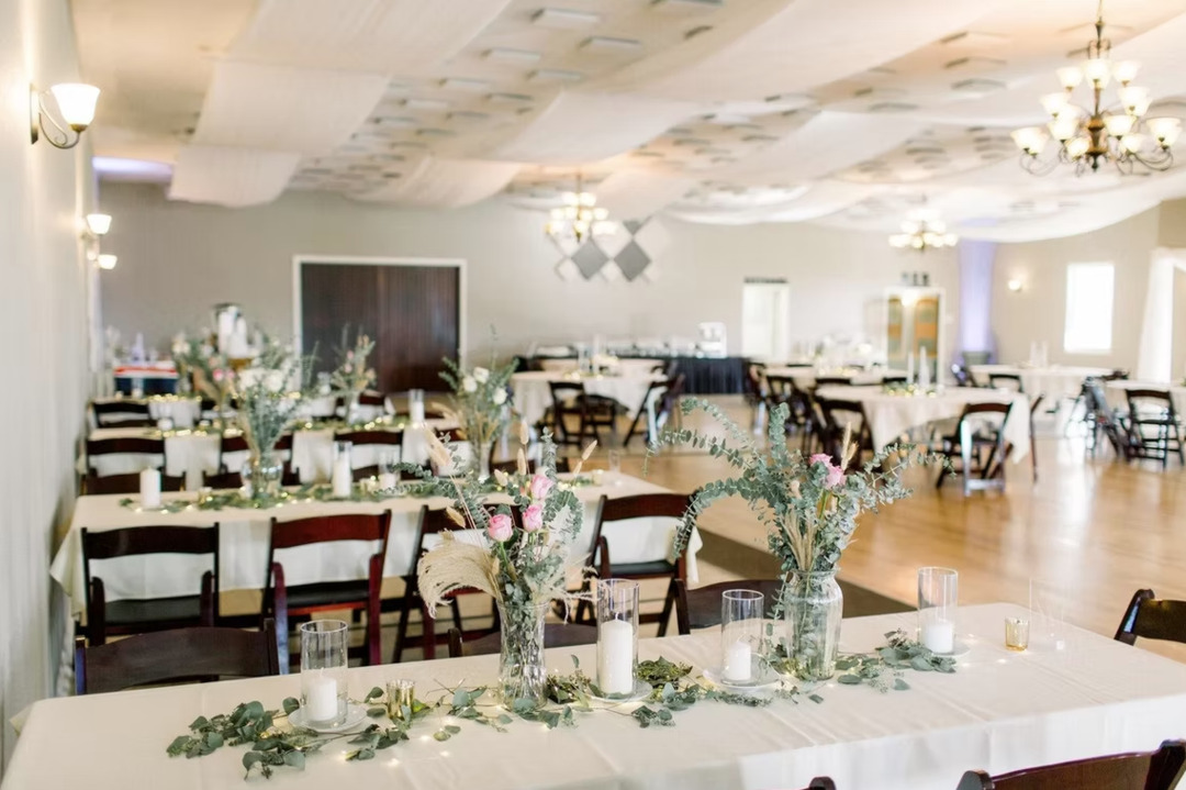 Inside, as you enter the ballroom, you are welcomed with natural lighting, a large wood dance floor, traditional chandeliers, and draped ceilings. The bar features cocktail tables and chairs, a flat screen TV, and a classic wood bar. Restrooms are easy to reach from every room within the Eden including the smaller yet naturally elegant banquet room. The Banquet room feature sliding wood barn doors, mood lighting, and so much more. The Eden will provide you and your guests with memories you will cherish for a lifetime.
