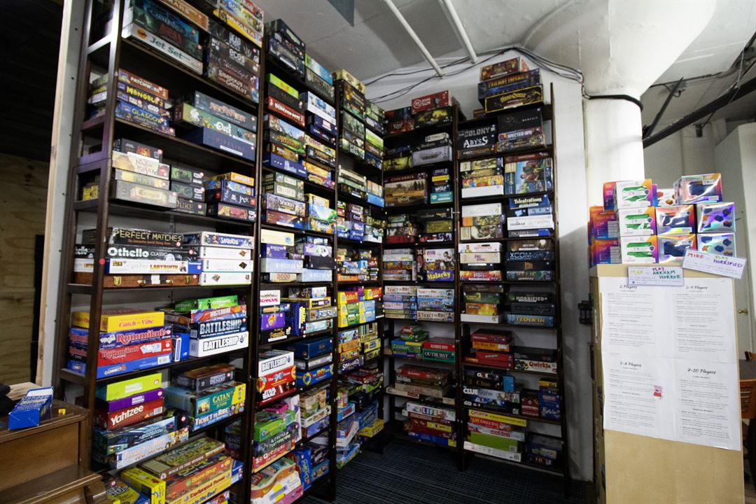 Our party room is ideal up to 32 people. The room includes dart boards, two foosball tables, 55-inch 4K TV, plus unlimited use of our 400+ table top game library.
