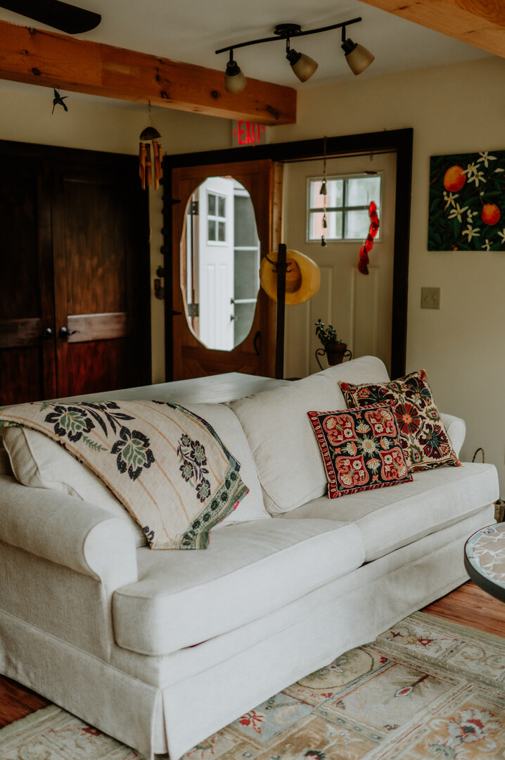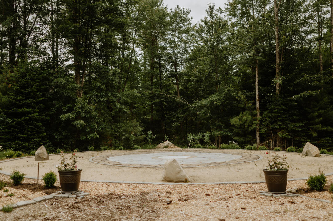 20x40 outdoor tent area for shade & covered seating, sitting in 3 acres of gardens, trails abutting 15 acres with access to the Saco river. A fully furnished house with indoor & outdoor shower. Depending on size of event dishes, tables & chairs available.
