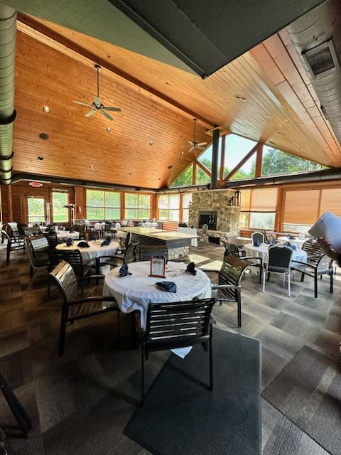 The Beauitful Log Cabin building has 2 fire places A waterfall Large private Sunroom & a beauitful well maintained Yard. Our Experienced Event Staff Specializes in intimate Weddings, Showers & Large parties.