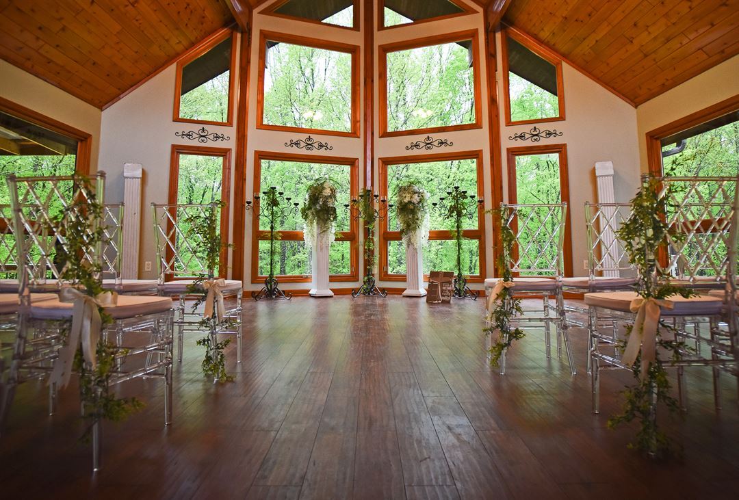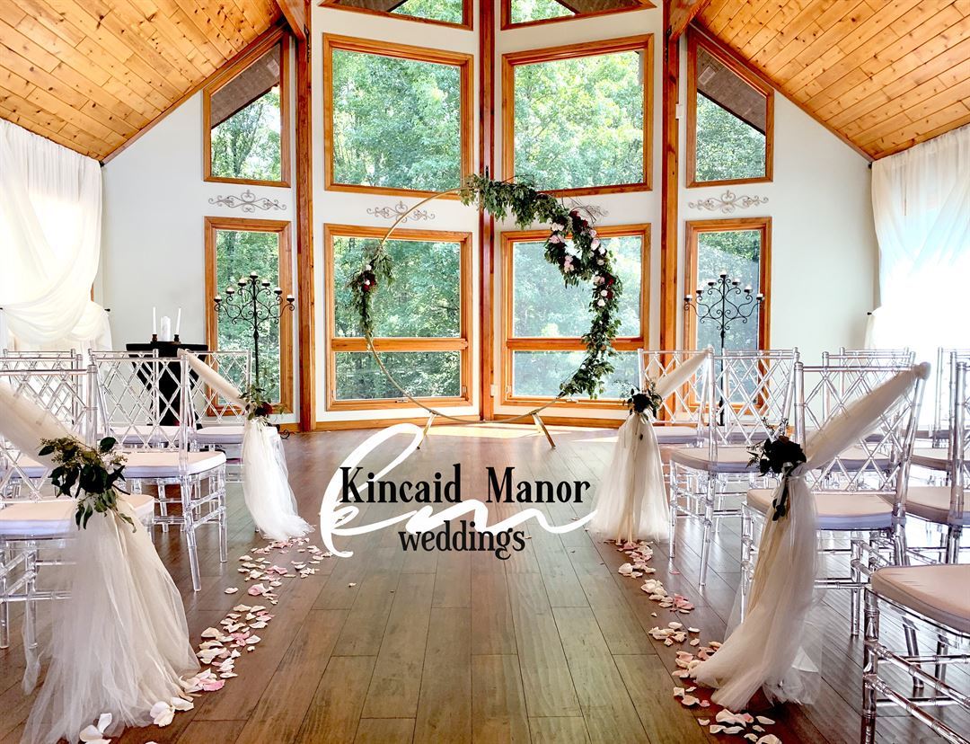 Kincaid Manor is a wedding venue that offers both indoor and outdoor ceremony space with a dedicated reception hall. Choose from a natural wooded backdrop, the lakeside ceremony space, or an indoor chapel. All areas include seating and the reception hall comes with tables, chairs, linens, and table decorations. No hidden or extra fees. All tours are private and scheduled in advance. Schedule yours by visiting our website.