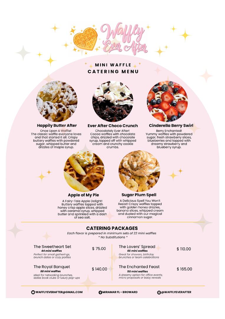 Perfect for brunches, showers and special gatherings! If you're looking to add a touch of magic and sweetness to your next event, Waffly Ever After is an absolute must!