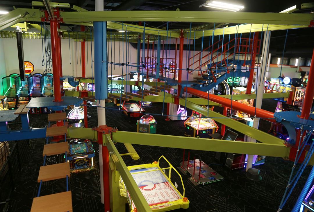 Block Party Social features a next-generation, multi-level laser tag arena, a high ropes course with 180-degree zip line (only one of two in the USA), climbing walls, and an interactive, spacious game space. Games such as the world’s largest Pac Man and the virtual reality favorite, Virtual Rabbids provide hours of enjoyment and challenges.