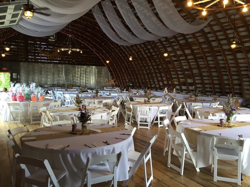 Our beautiful rustic farm provides the perfect location for your special wedding day. We are a handicapped venue. The breathtaking original barn floor to the free-span, open truss ceiling provides for the rustic touch for your event. The barn is completely insulated to provide you with a more comfortable environment, including recently installed heat and air conditioning. Your guests will enjoy dancing the night away under the LED lights which follow the trusses overhead.