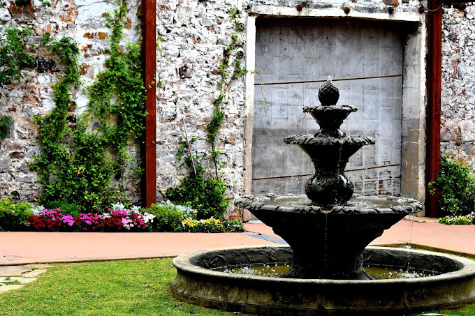Behind old stone walls and ornate iron gates, the breezy courtyard with splashing water falling from a tiered fountain creates a timeless, romantic memory for you and your guests.