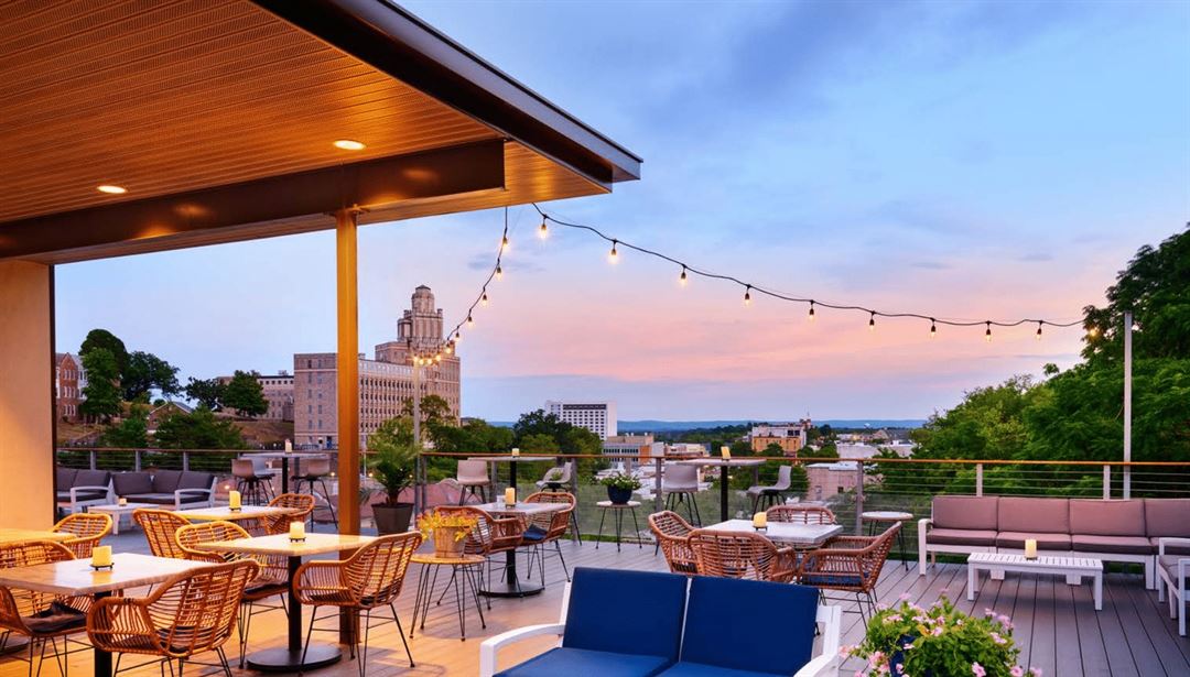 The Rooftop - The rooftop has gorgeous views of some of the most historic buildings downtown, Hot Springs. No view in the area is like it. It has a large area in the front of the rooftop that is private for events. It can sit up to 65 for cocktail. The pricing for this area starts out at $1,000 per hour with an F&B minimum.