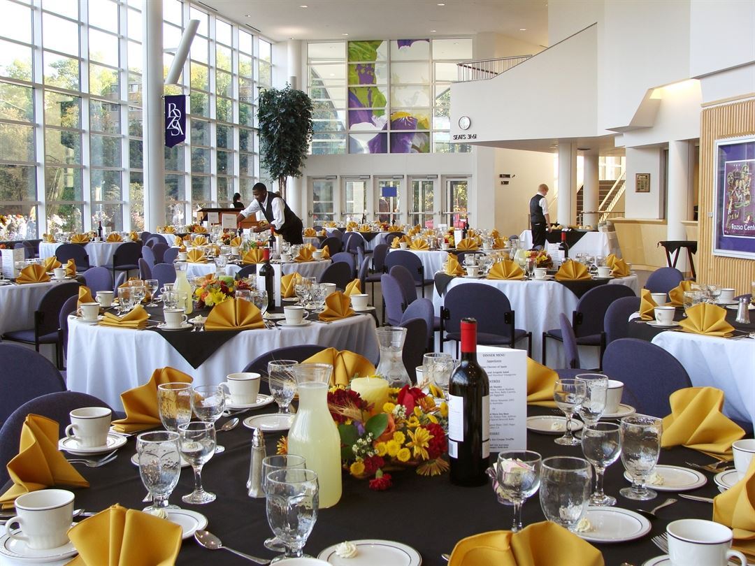 The Rozsa Center’s beautiful Samuel and Grace Horner lobby features 20’ high ceilings with a spectacular 160’ wall of glass. Whether it’s a charitable gathering, a special reception, or a luncheon celebration, holding it at the Rozsa Center will go a long way to making the occasion successful and memorable. The lobby can host receptions for up to 500 or dinners for up to 250 guests. The lobby, along with other conference spaces, is also a great location for art shows, small concerts, and events of all kinds.