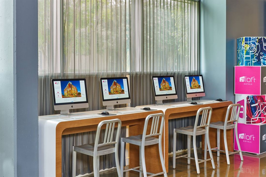 Get busy in Tactic, Aloft Houston by the Galleria’s 500 square feet of meeting space, and add some pizzazz to your next business bash. Set up as a U-shape with table for 18, it’s quick to reconfigure if there’s another arrangement you need.