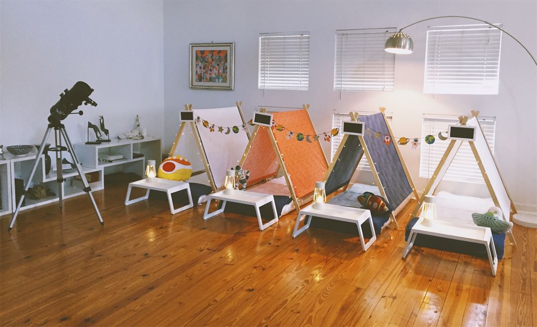 In a city where camping is only an option for a few weeks out of the year due to extremely hot weather conditions, we offer a fantastic glamping experience within the comfort and safety of your home. Our indoor tents are the perfect setting for children and young teens to have a slumber party adventure any time of the year!