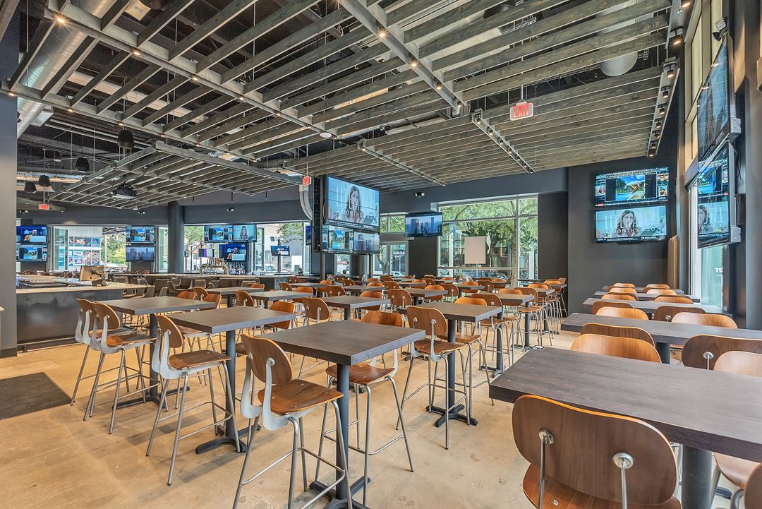 - With TV screens throughout our venue, we can meet any of your A/V needs, whether it be your brand logo on every screen or advanced capabilities