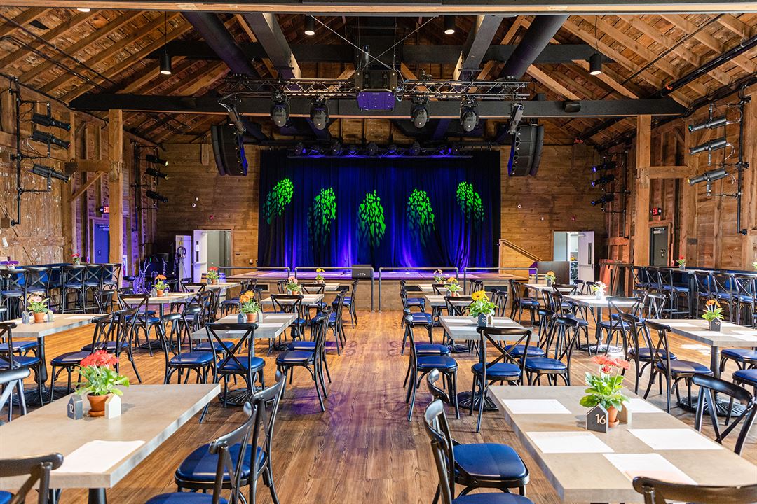 An immersive entertainment experience open in the Hershey, PA area. The restored, historic bank barn, now state-of-the-art event space and concert venue includes custom lights and audio, and theater-sized screen for theatrics, presentation, and sports.