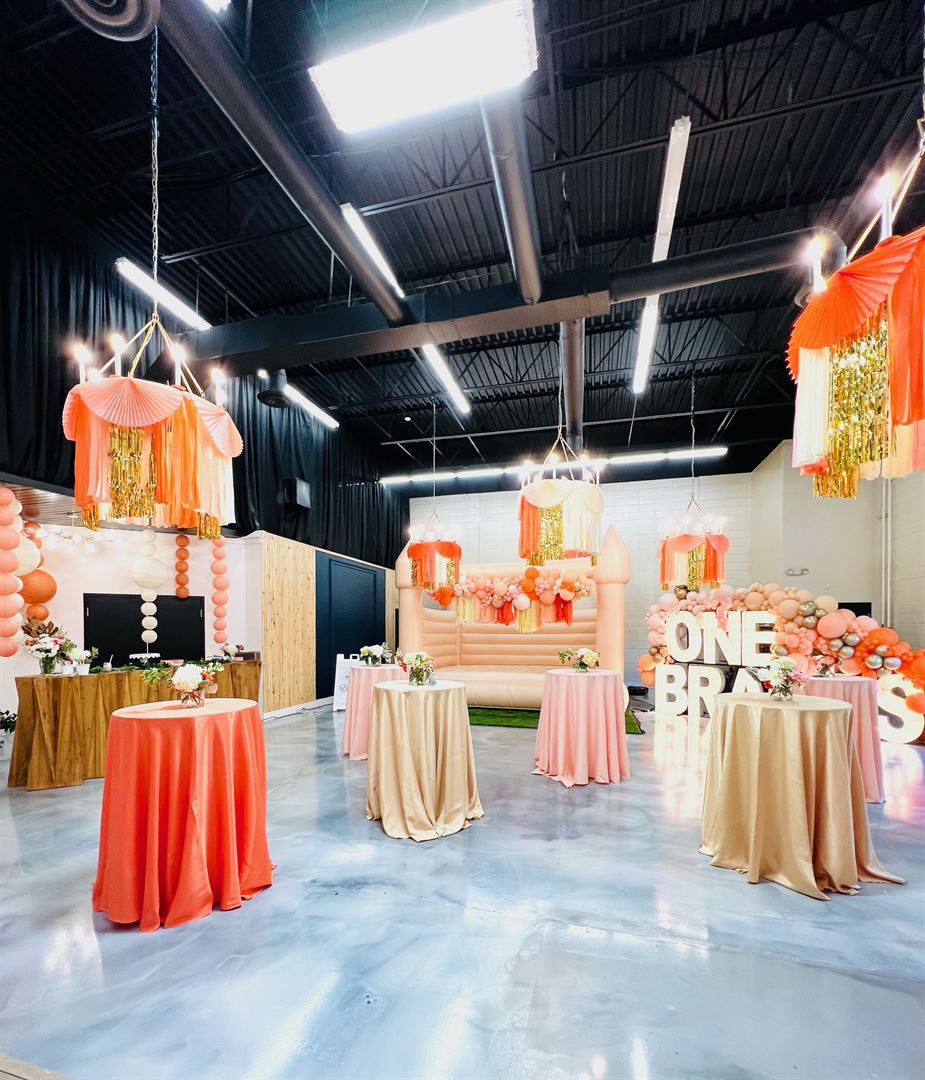 Our event room is elegantly designed to create an upscale atmosphere for all occasions. Whether you’re celebrating a birthday, baby/bridal shower, anniversary, or special party, our space enhances the soirée of your dreams! Our glass garage door brightens the room and gives open access for drive-up service such as food trucks and mobile bars.