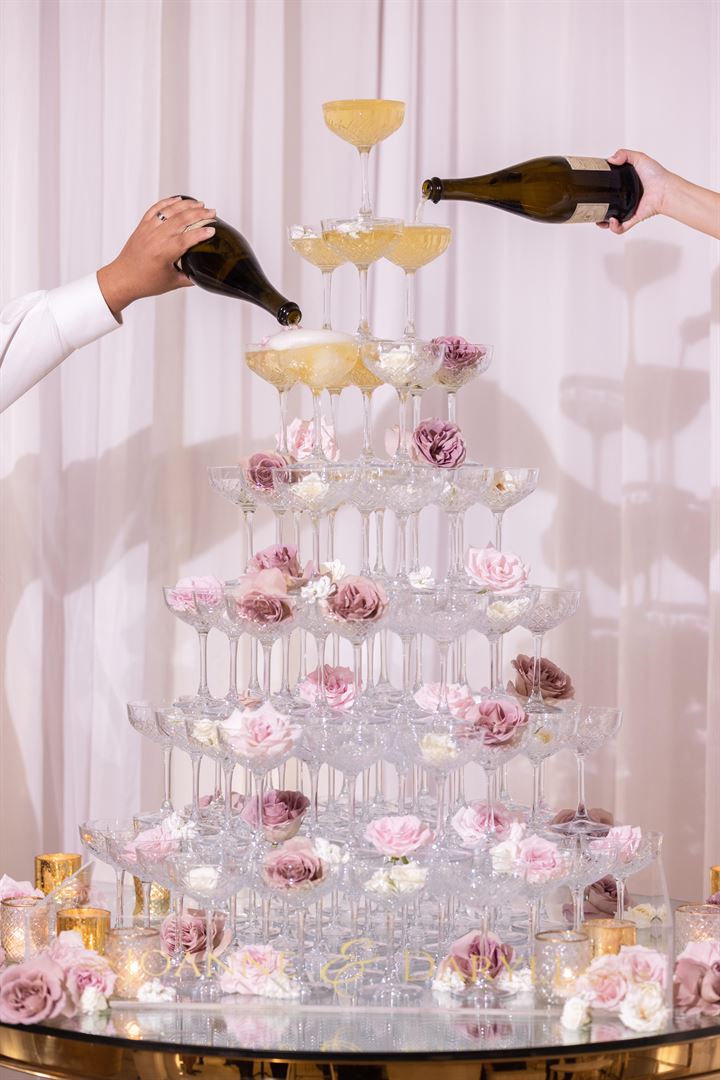 We specialize in building and serving professional Champagne Towers and have been executing them all over California for over 5 years. We install large format towers perfect for holiday parties, galas, weddings and other exclusive gatherings.