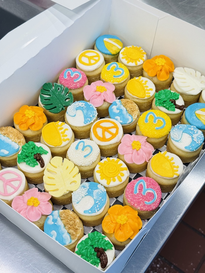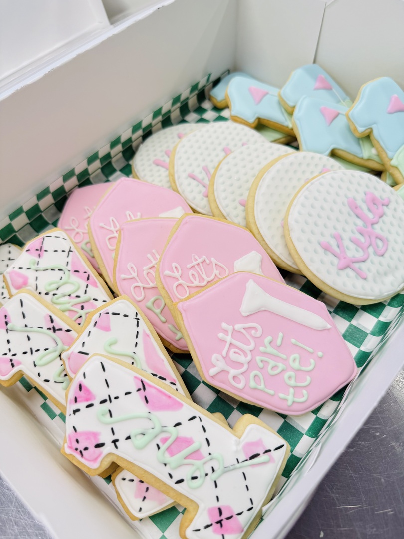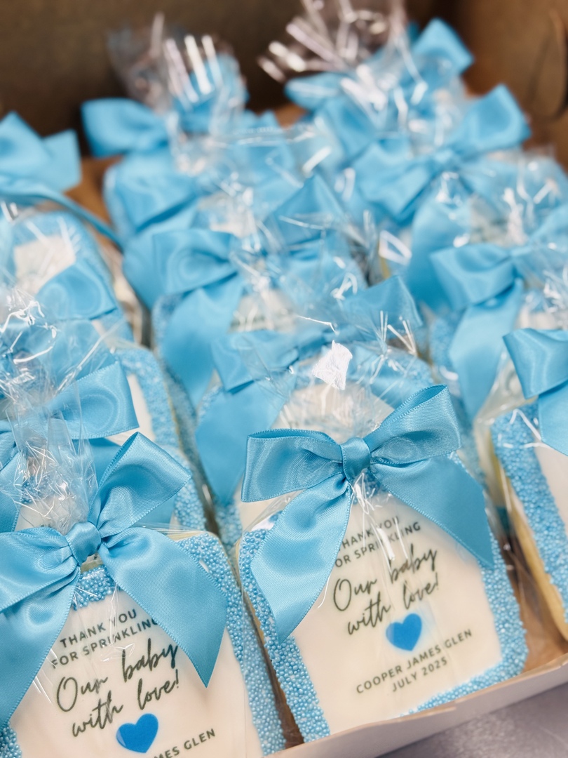 Handcrafted sugar cookies decorated with smooth royal icing and fully customizable for your event. Perfect as gifts, favors, or part of a dessert display.