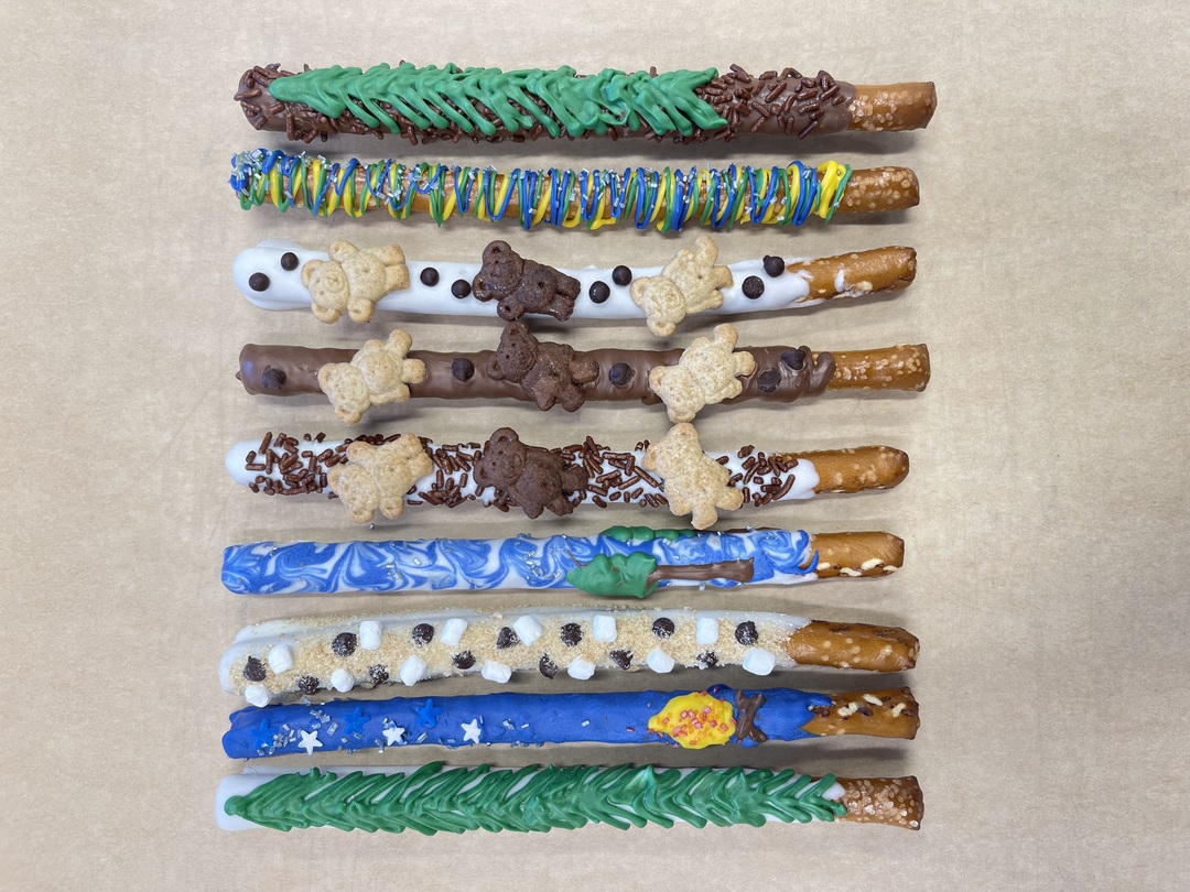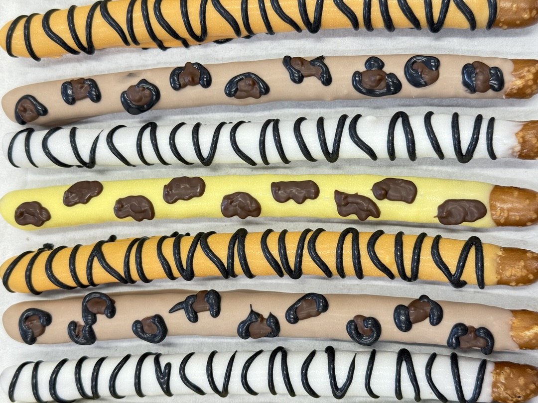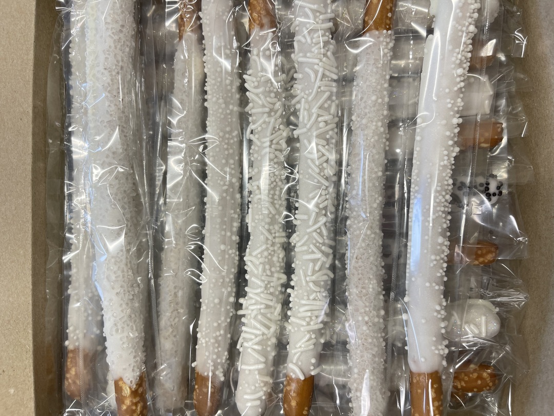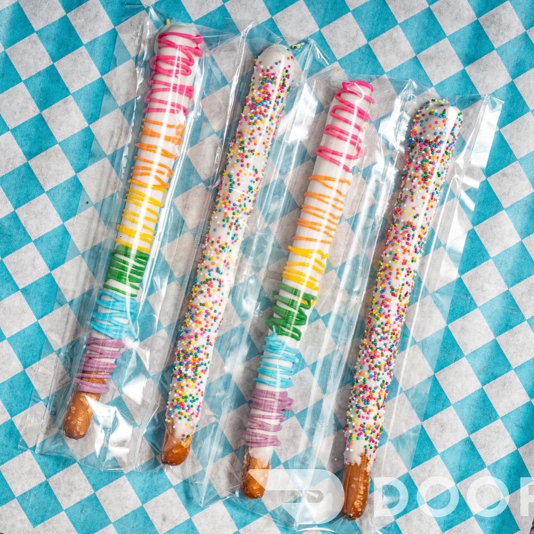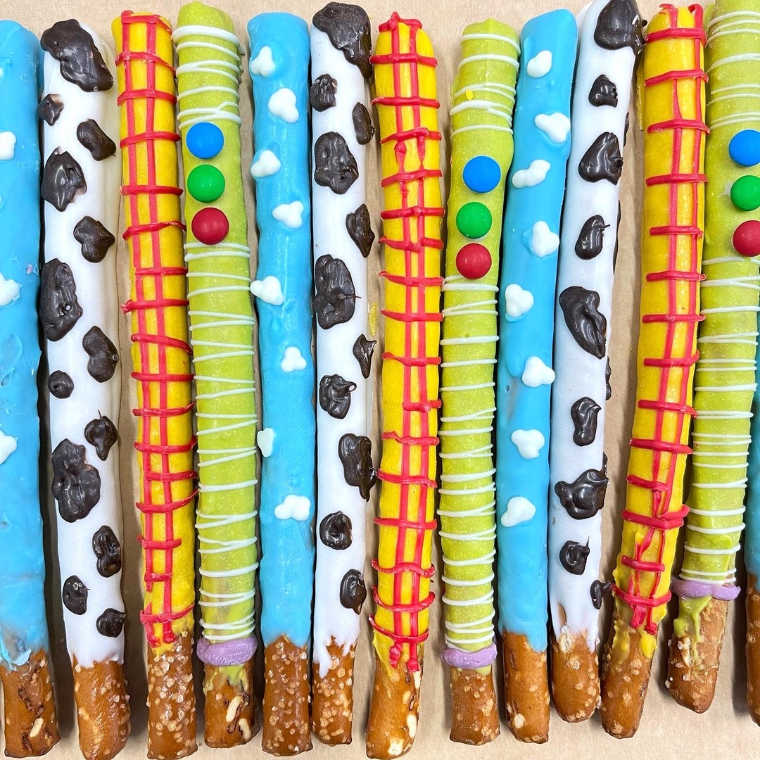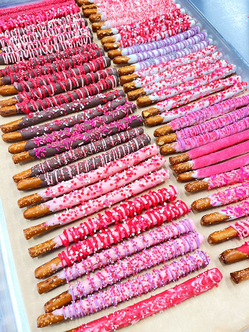 Handcrafted pretzels dipped in premium chocolate and decorated to match your event. Great for corporate gifts, holiday spreads, or dessert tables.