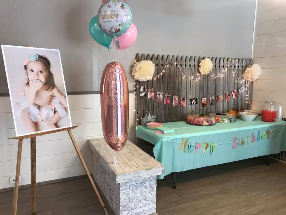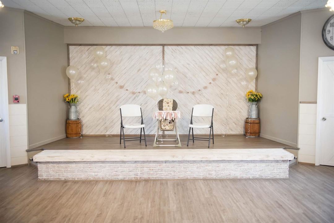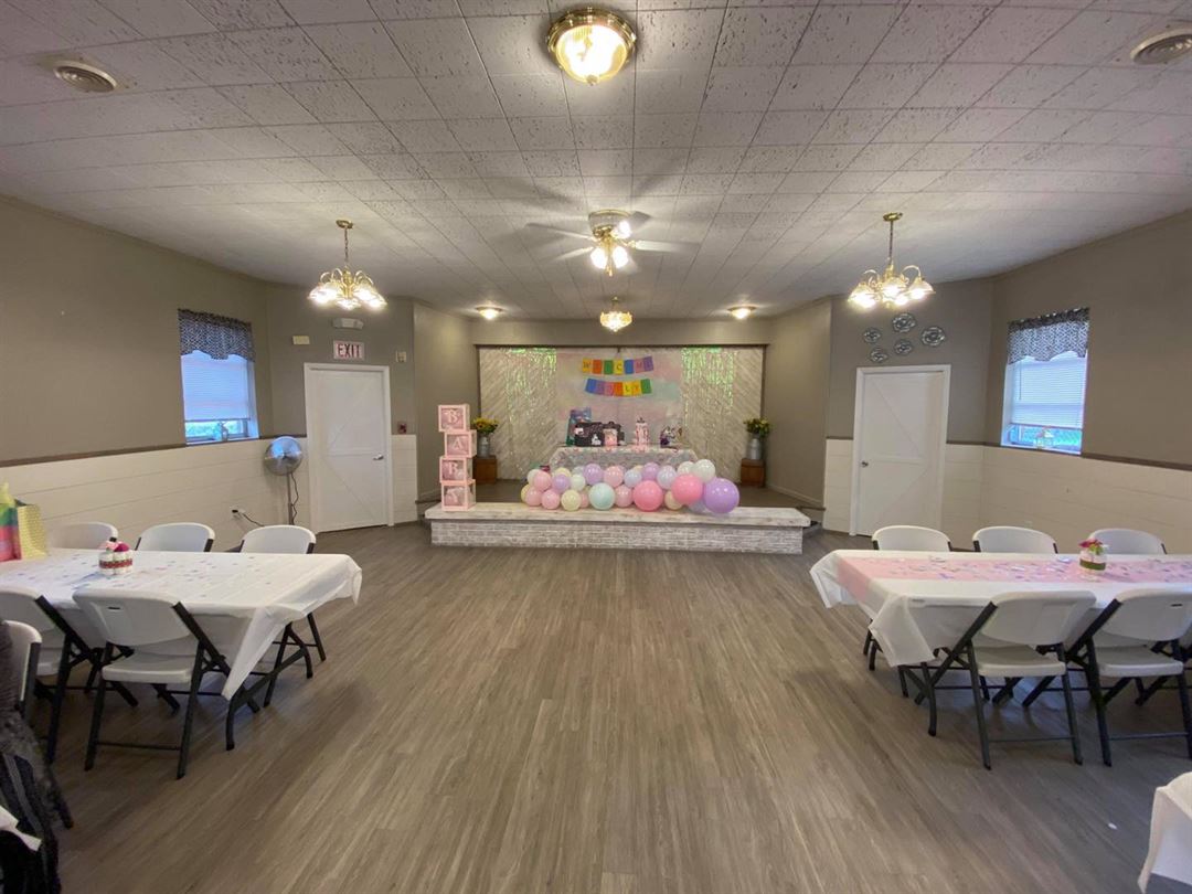 Newly renovated with a touch of farmhouse and modern rustic style. It is very open and has a stage area that is perfect for the bride or mother to be to open gifts. Plenty of parking. It has style and ambience and must be seen in person to be appreciated
