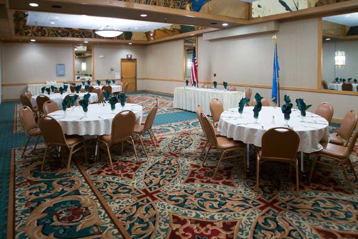 The Huron Event Center links the Crossroads Hotel with the Huron Arena and Exposition Center, providing over 23,000 square feet of meeting space and pre-function area for a grand total of 34,000 square feet.